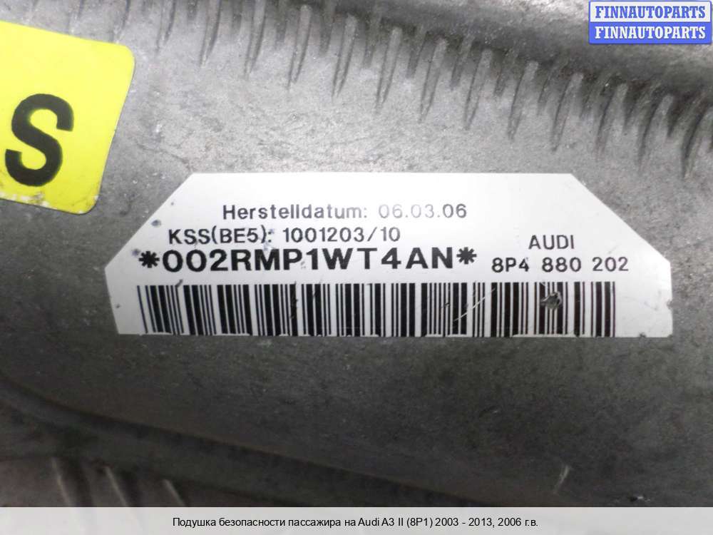 Подушка безопасности пассажира | Audi A3 II (8P1) рестайлинг 1 2003 - 2013 |