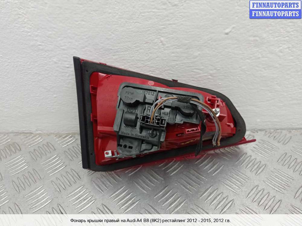 Компания FINNAUTOPARTS занимается продажей контрактных (б/у, бывших в употреблении) запчастей для иномарок. В нашей компании продаются только оригинальные запчасти из Европы, Японии и Кореи, которые не имеют пробега по РФ. Если вы хотите приобрести фонарь крышки багажника (правый) для а/м Ауди А4 Б8, смело обращайтесь в нашу компанию. Все наши менеджеры — профессионалы своего дела, и с удовольствием помогут вам купить запчасти, в том числе, фонари крышки багажника правые, на Audi A4 (8K, B8) и другие автомобили.