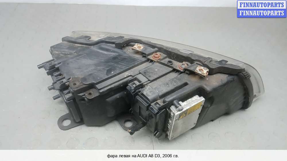 Компания FINNAUTOPARTS занимается продажей контрактных (б/у, бывших в употреблении) запчастей для иномарок. В нашей компании продаются только оригинальные запчасти из Европы, Японии и Кореи, которые не имеют пробега по РФ. Если вы хотите приобрести фару переднюю (левая) для а/м Ауди А8 Д3, смело обращайтесь в нашу компанию. Все наши менеджеры — профессионалы своего дела, и с удовольствием помогут вам купить запчасти, в том числе, передние фары левые, на Audi A8 (D3, 4E) и другие автомобили.