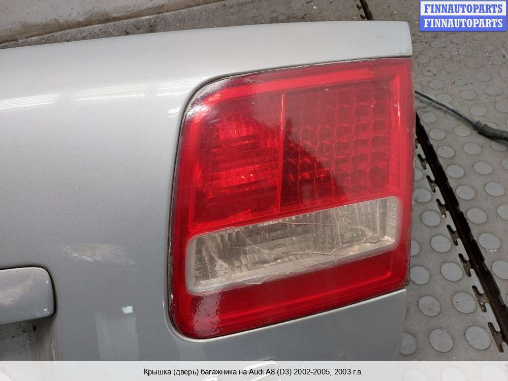 2003; Бензин; 4.2; BFM, Инжектор; Седан; ; серебристый; 2003, 4.2л, Бензин, Инжектор, BFM, 4E0827023A, Седан, серебристый, Фото не актуально, с запчасти отделены: Фонарь крышки багажника, Фонарь крышки багажника, Замок багажника, Подсветка номера, Замок | Фонарь правый, отклеено стекло фонаря, ржавчина, царапины, вмятины,, ржавчина, царапины, вмятины