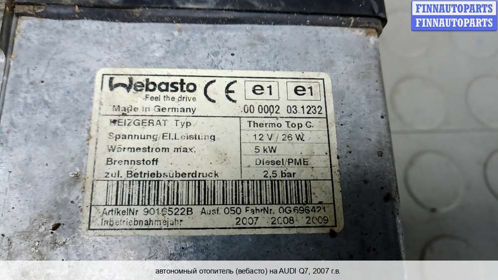 Купить автономный отопителя (вебасто) на Audi Q7 (4L) (Ауди Ку 7) в Смоленске :