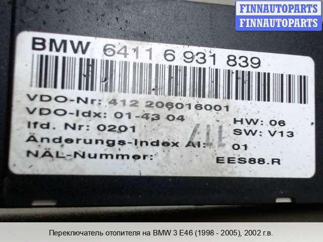 | Переключатель отопителя | BMW 3 E46 (1998-2006) |