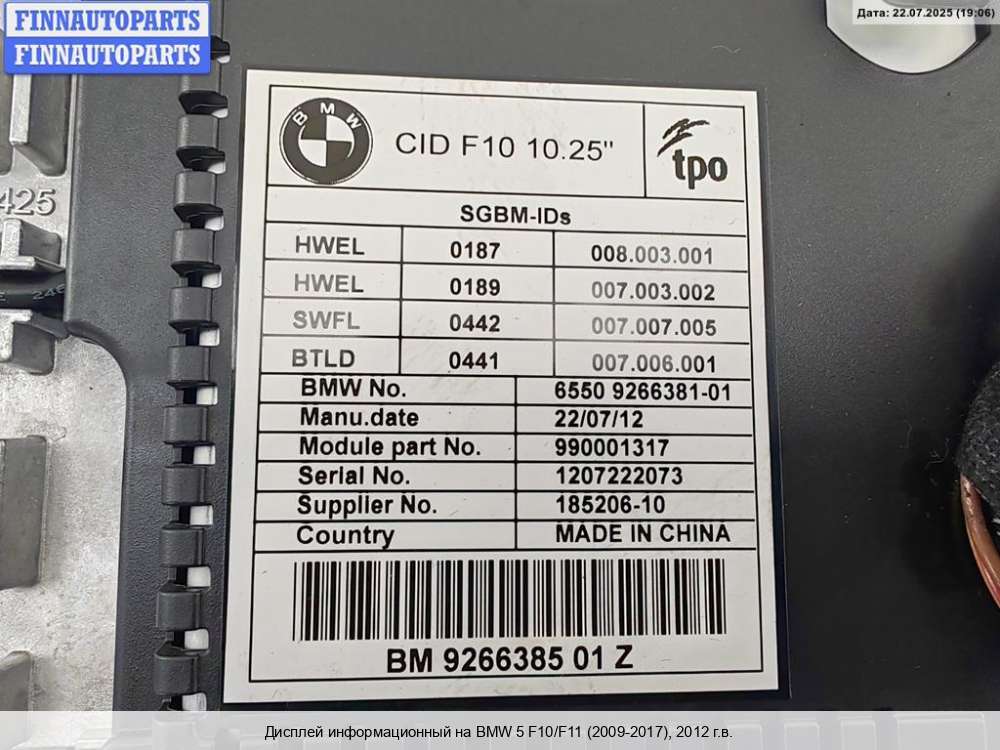 | дисплей информационный | BMW 5 - Series (F07/F10/F11/F18) (2009 - 2017) |