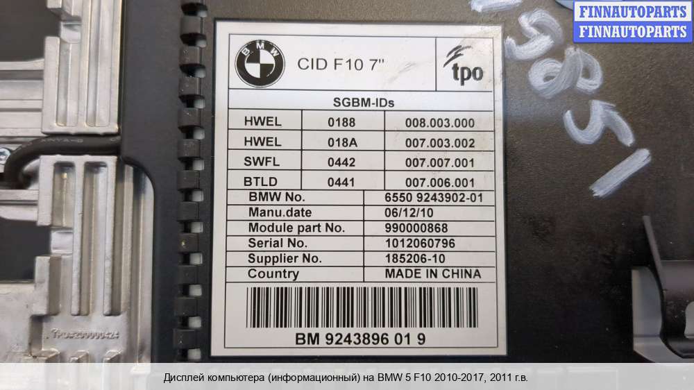 | Дисплей информационный | BMW 5-Series F10 2009 - 2013 |