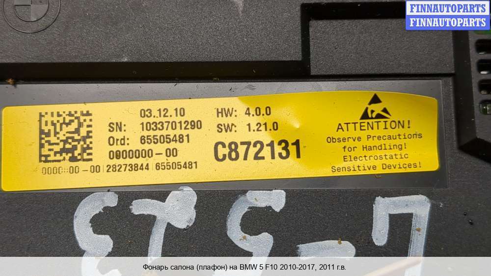 Купить фонарь салона (плафон) на BMW 5 (F10/F11) (БМВ 5 (Ф10)) в Смоленске :