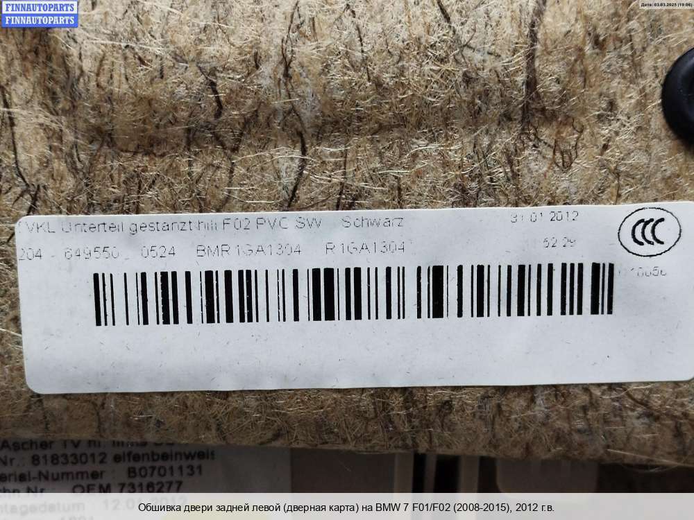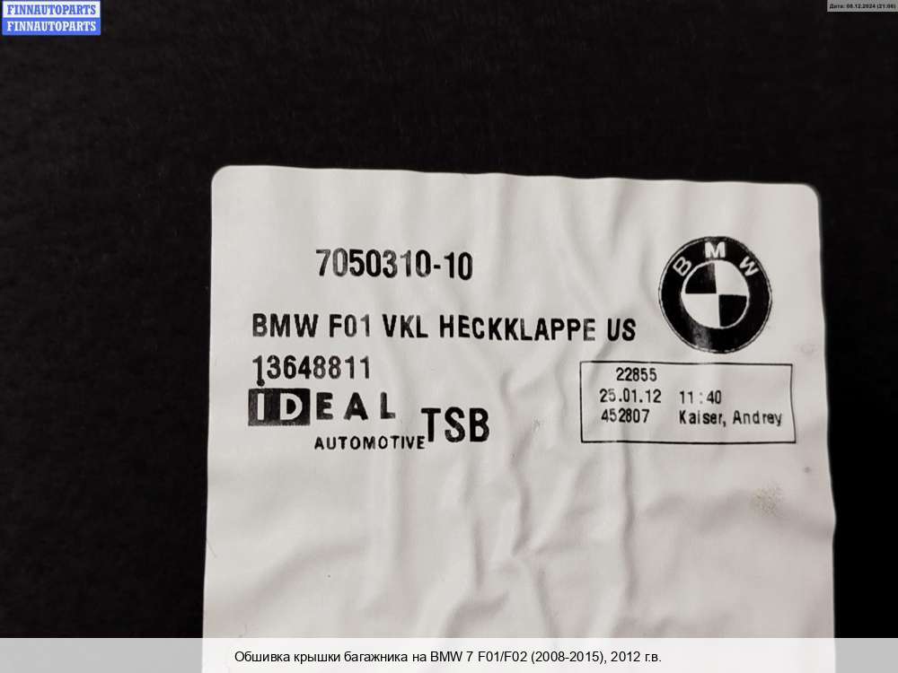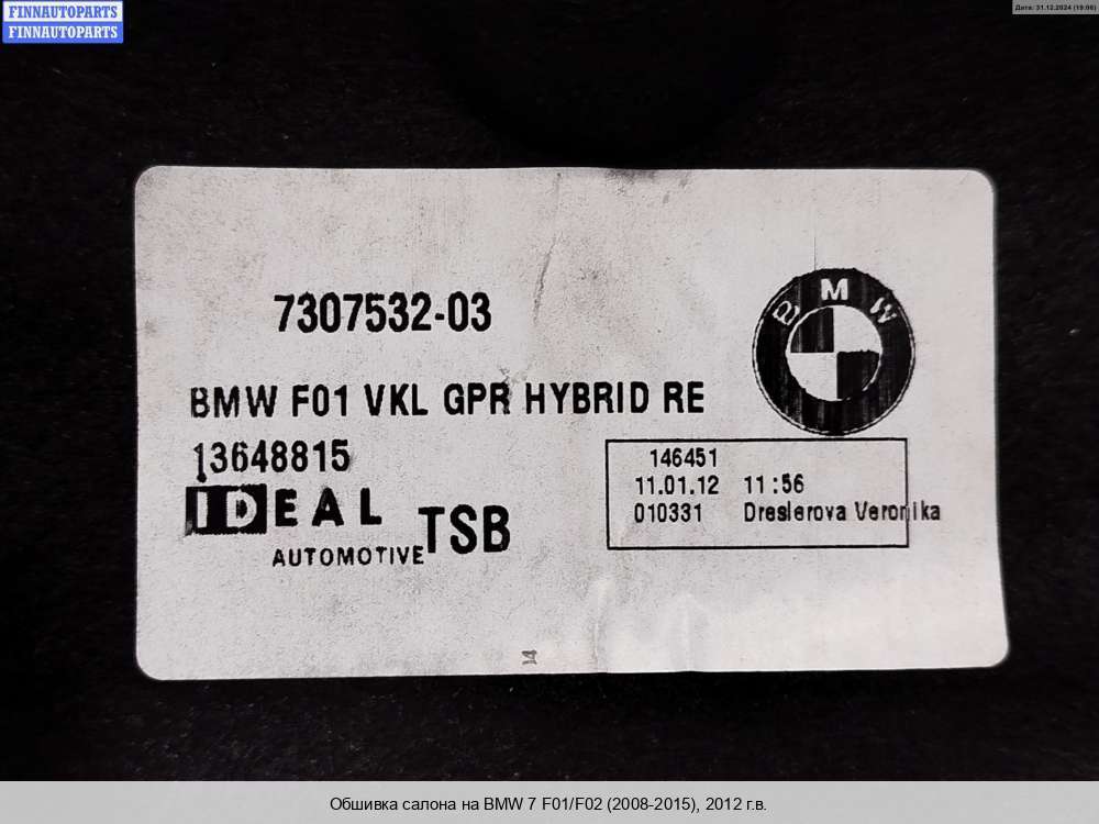 Купить обшивку салона на BMW 7 (F01/F02) (БМВ 7 (Ф01)) в Смоленске :