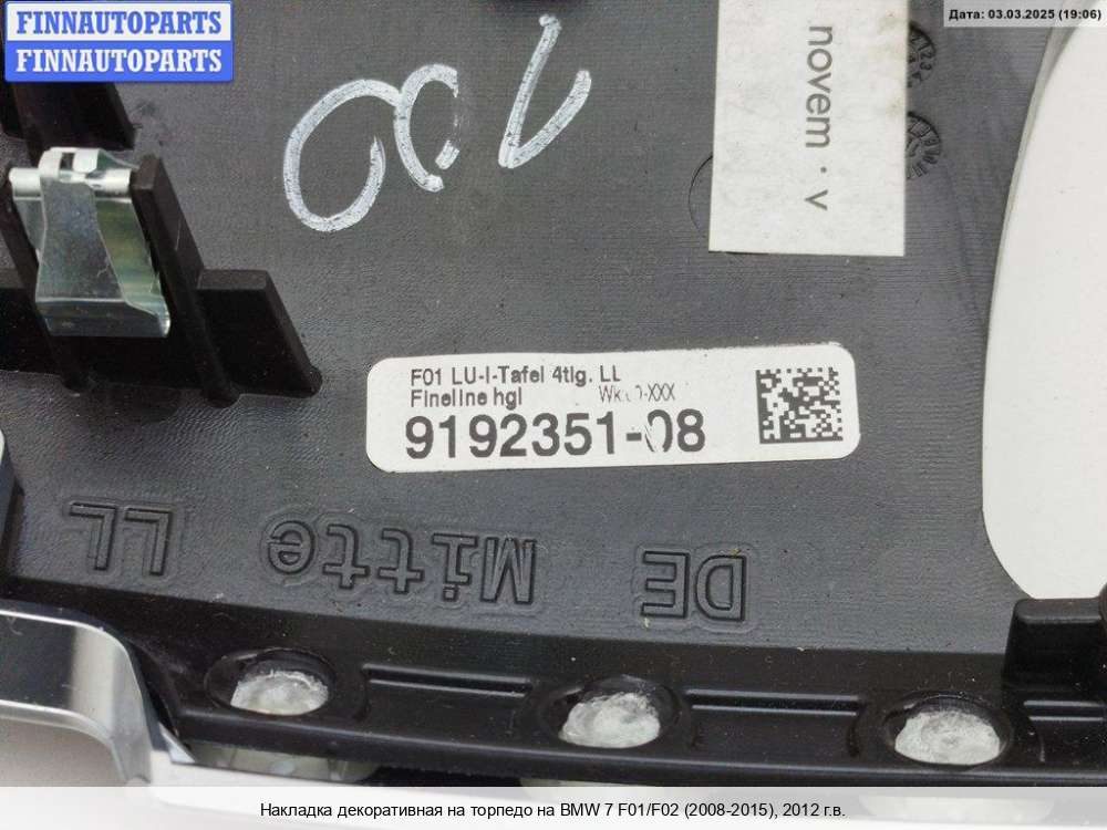 | Уфа | 2010 | 51459143936, 2010, 4.4л, Бензин, Турбо-инжектор, N63 B44A, 51459143936, Седан, серебристый, - | - , передней панели салона (торпеда), царапины, вмятины, | |||