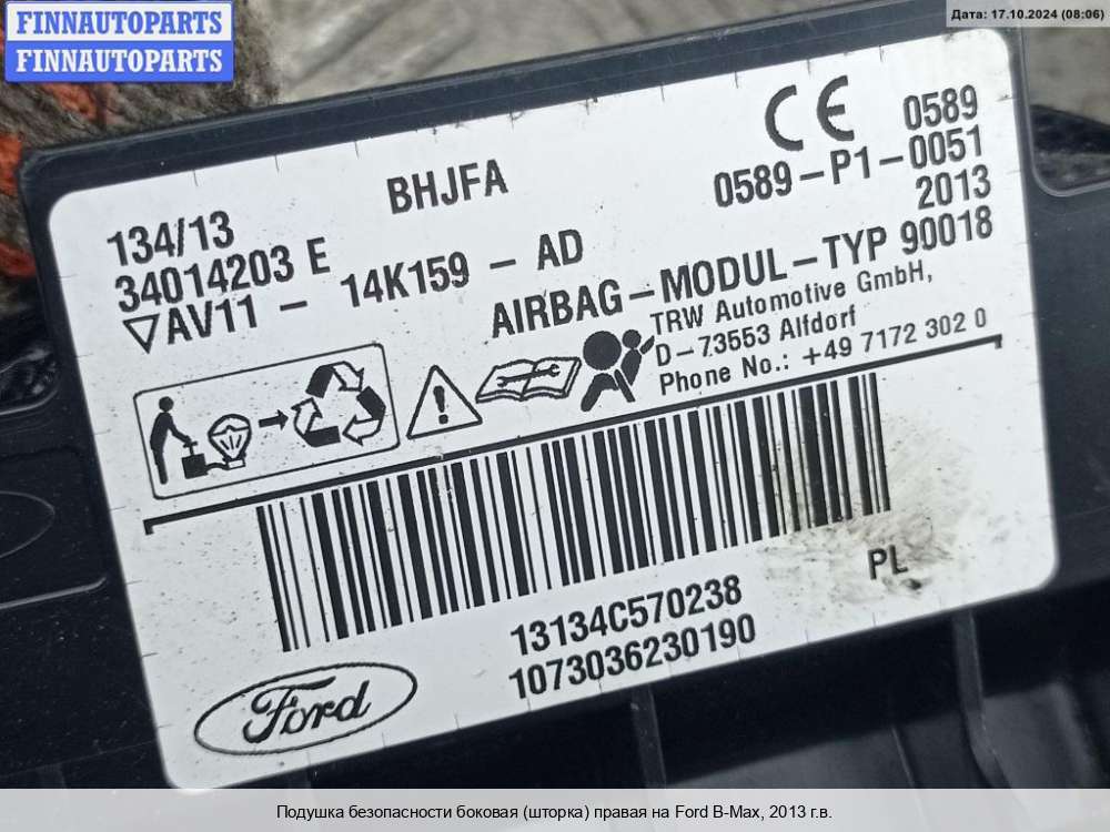 | Подушка безопасности боковая (шторка) правая | Ford B-Max |