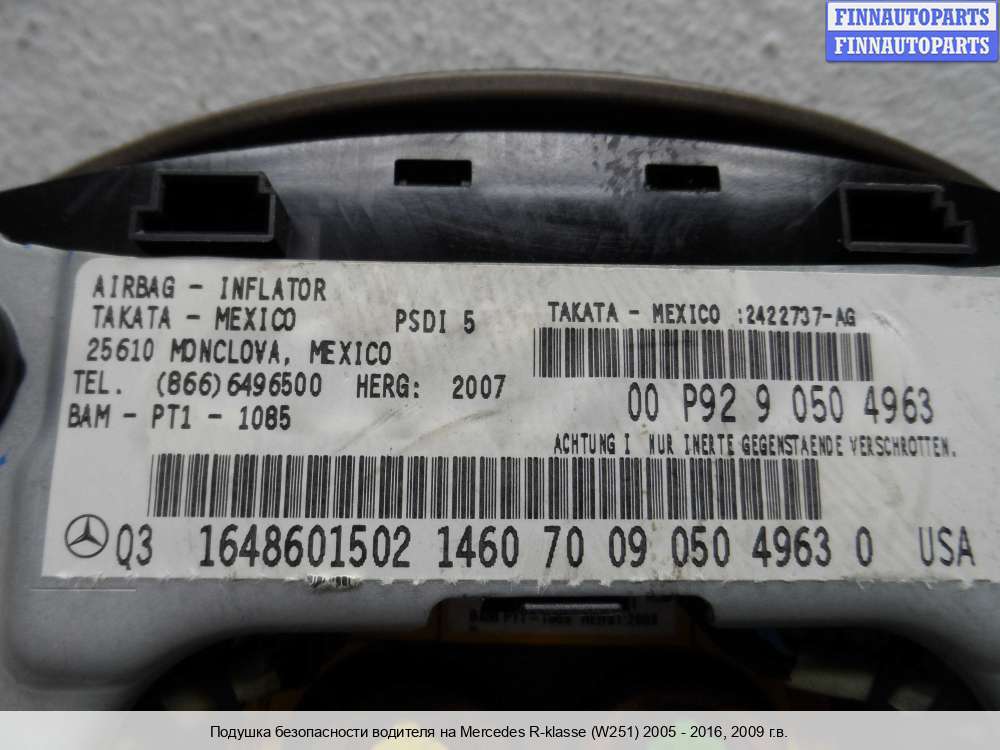 | подушка безопасности водителя | MERCEDES BENZ R-CLASS W251 |