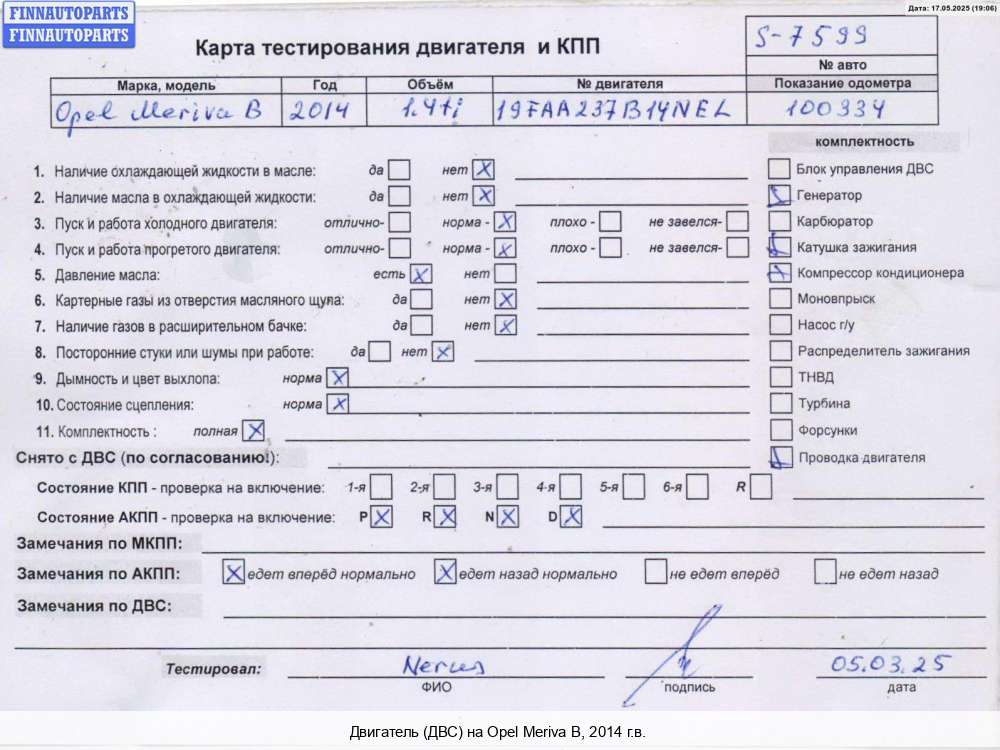 Владикавказ | 2011 | 5600049, 5600266, 2011, 1.4л, Бензин, Турбо-инжектор, A14NEL, 19WX9353A14NEL, 5600049, 5600266, Минивэн, серебристый, Фото не актуально, с запчасти отделены: Компрессор кондиционера, Генератор, Турбина, Маховик, Коллектор впускной, Заслонка дроссельная, Катушка зажигания, Форсунка топливная, 19WX9353A14NEL | - , прокручивается, состояние ГРМ - нормально, поддон - нормально, клапанная крышка - нормально, эмульсия - нет, сломан датчик, сломана ручка щупа, | |||
