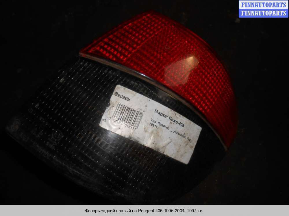 Компания FINNAUTOPARTS занимается продажей контрактных (б/у, бывших в употреблении) запчастей для иномарок. В нашей компании продаются только оригинальные запчасти из Европы, Японии и Кореи, которые не имеют пробега по РФ. Если вы хотите приобрести фонарь задний (правый) для а/м Пежо 406, смело обращайтесь в нашу компанию. Все наши менеджеры — профессионалы своего дела, и с удовольствием помогут вам купить запчасти, в том числе, задние фонари правые, на Peugeot 406 и другие автомобили.
