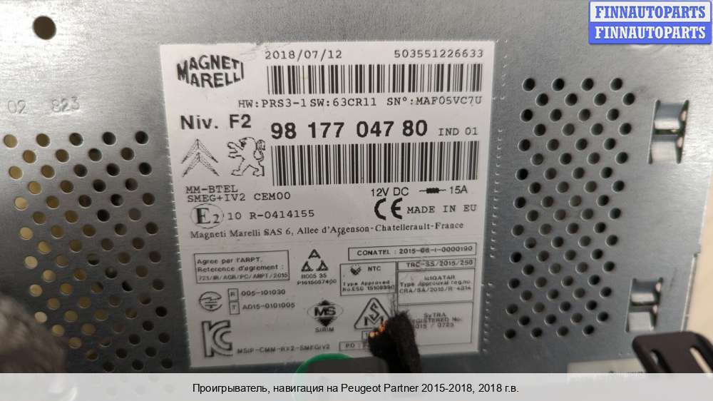 Проигрыватель, навигация | Peugeot Partner 2015-2018 |