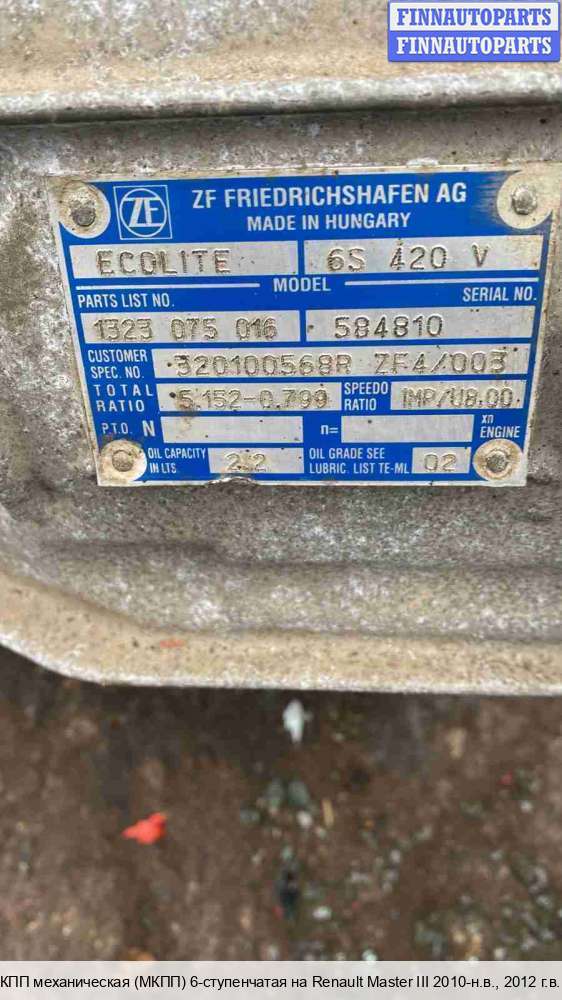 | Уфа | 2010 | 320101044R, 6-ступенчатая, тип/номер: F60 18 | |||