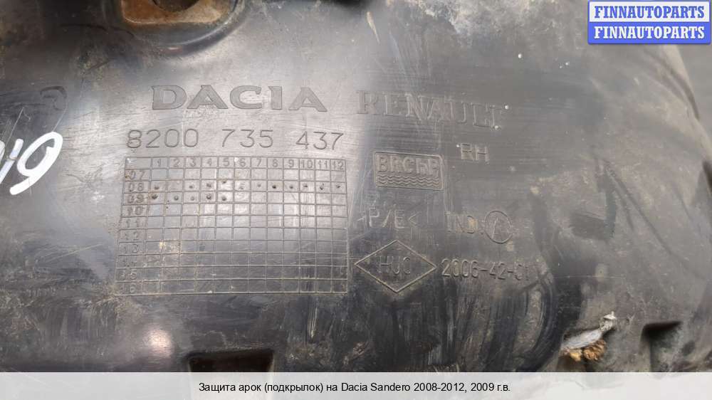 2009; ; ; SANDERO '08- ПОДКРЫЛОК ПЕРЕДН КРЫЛА ПРАВ