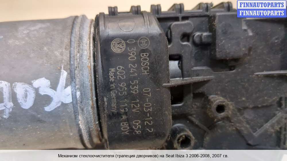 2007; Бензин; 1.4; BXW, Инжектор; Хетчбэк (3 дв.); ; ; серый; 2007, 1.4л, Бензин, Инжектор, BXW, 6L1955023H, Хэтчбэк 3 дв., серый, перед., левая=правая, Фото не актуально, с запчасти отделены: Двигатель стеклоочистителя (моторчик дворников) передний, лев=прав | Перед,