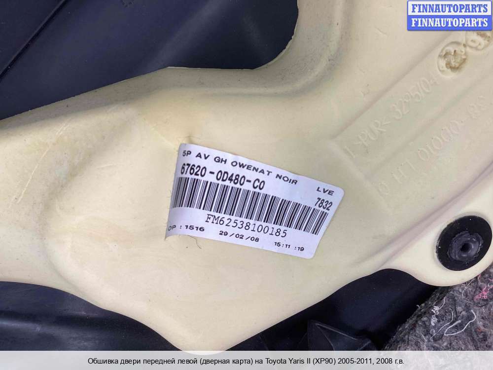 Обшивка двери передней левой (дверная карта) | Toyota Yaris Yaris II (XP90) 2005-2011 |