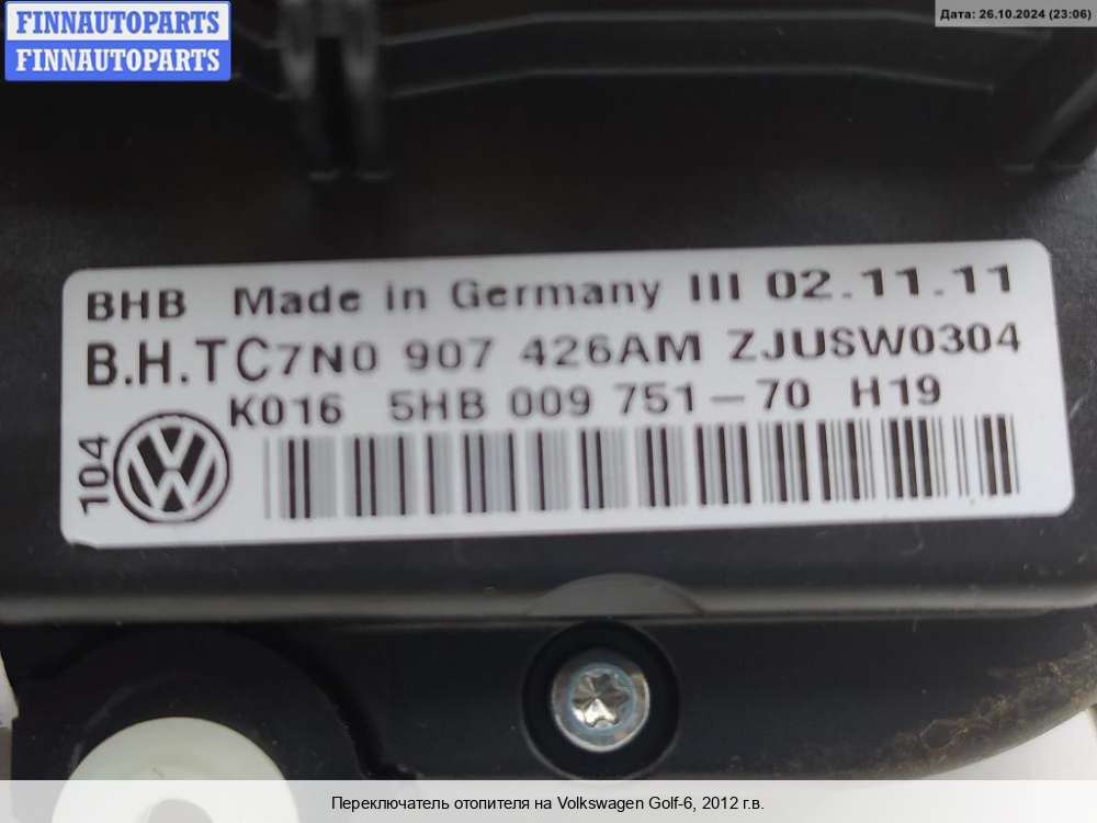 | Переключатель отопителя (печки) | Volkswagen Golf 6 2009-2012 |