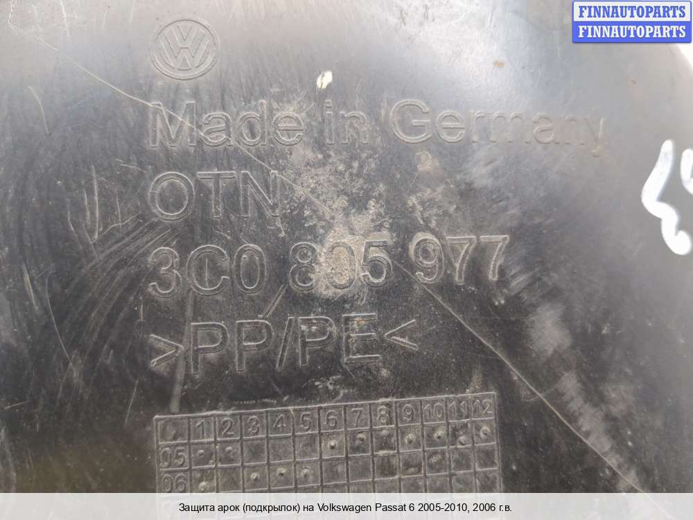 | защита арок (защита крыла, подкрылок) передняя правая | VOLKSWAGEN PASSAT B6 |