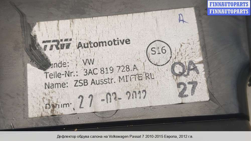История вопросов по Дефлектор обдува салона на Volkswagen Passat B7 (36):