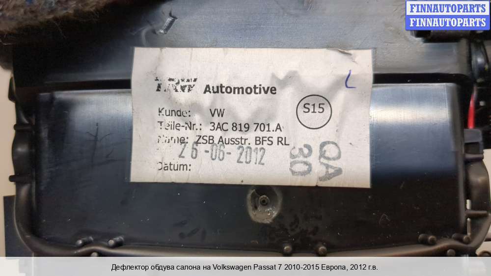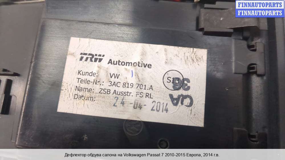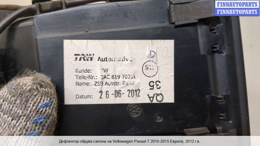 | Дефлектор обдува салона | Volkswagen Passat 7 2010-2015 Европа |