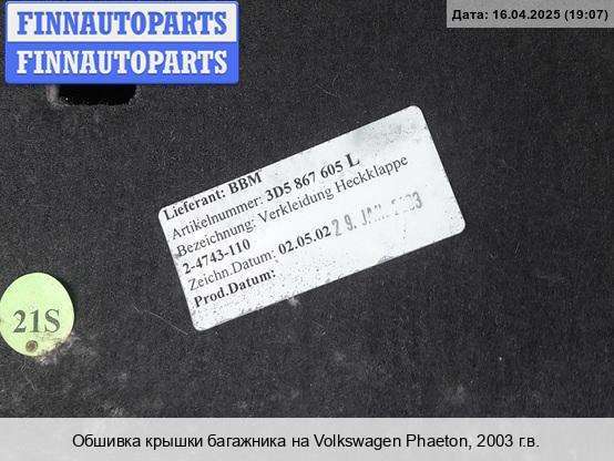 | Обшивка крышки багажника | Volkswagen Phaeton |