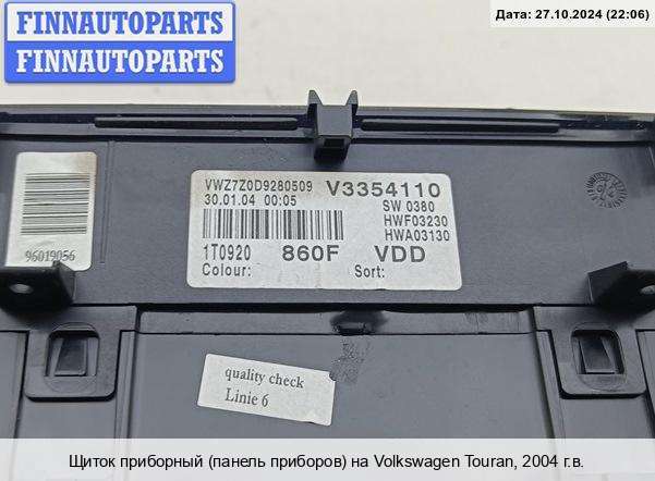 Купить приборную панель (щиток приборов) на Volkswagen Touran I (1T) (Фольксваген Туран) в Смоленске :