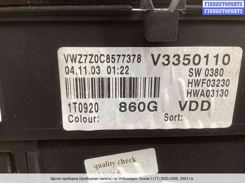 Щиток приборов для Volkswagen Touran I (1T)